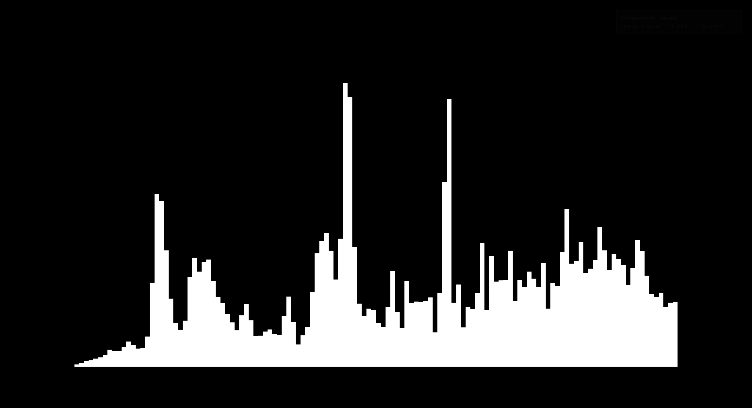 Example of using ow_get_audio_spectrum to visualize audio. It gets spectrum data and draws it as white bars on the screen, without any preprocessing.